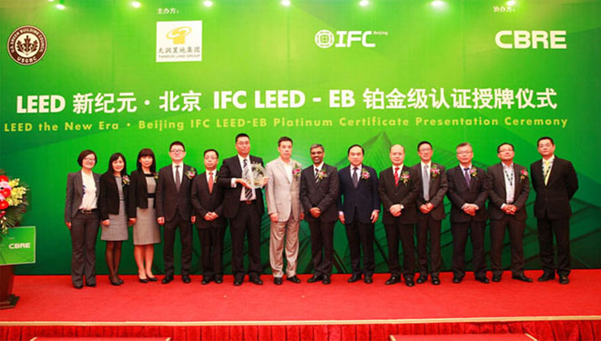 创建中央商务区绿色新地标——LEED新纪元,北京IFC LEED-EB铂金级认证授牌仪式在北京IFC大厦举办。
